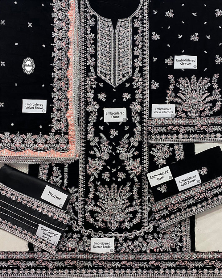 Aneela's Luxury Embroidered Velvet Wedding Collection- Black
