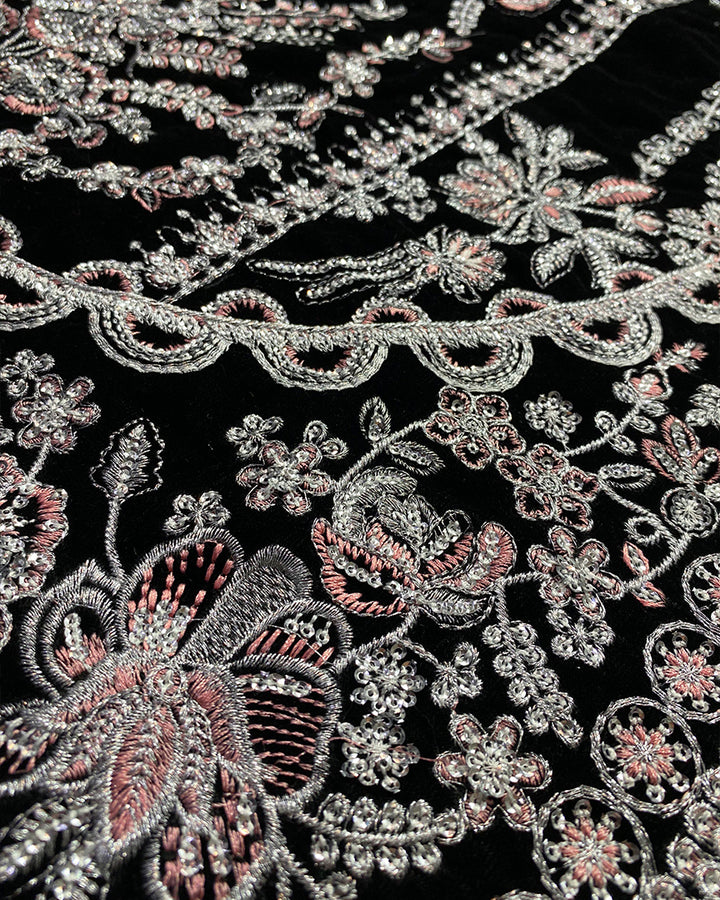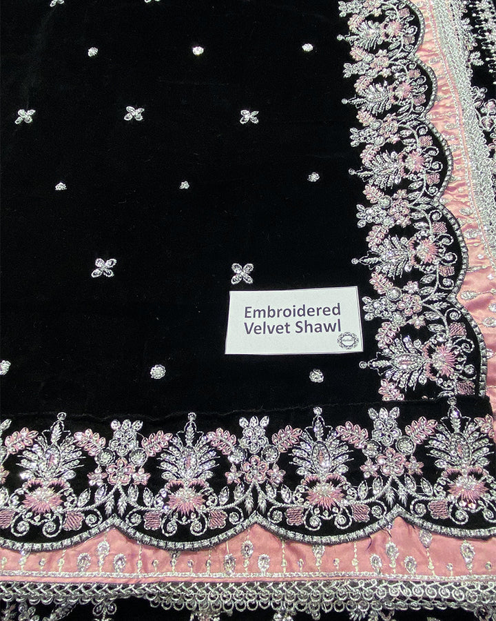 * Embroidered Velvet Shawl With 4 Sided Applique & Lacework Done