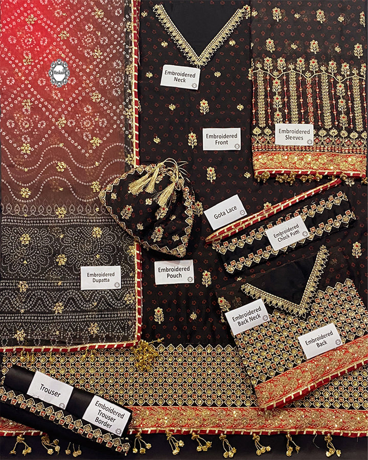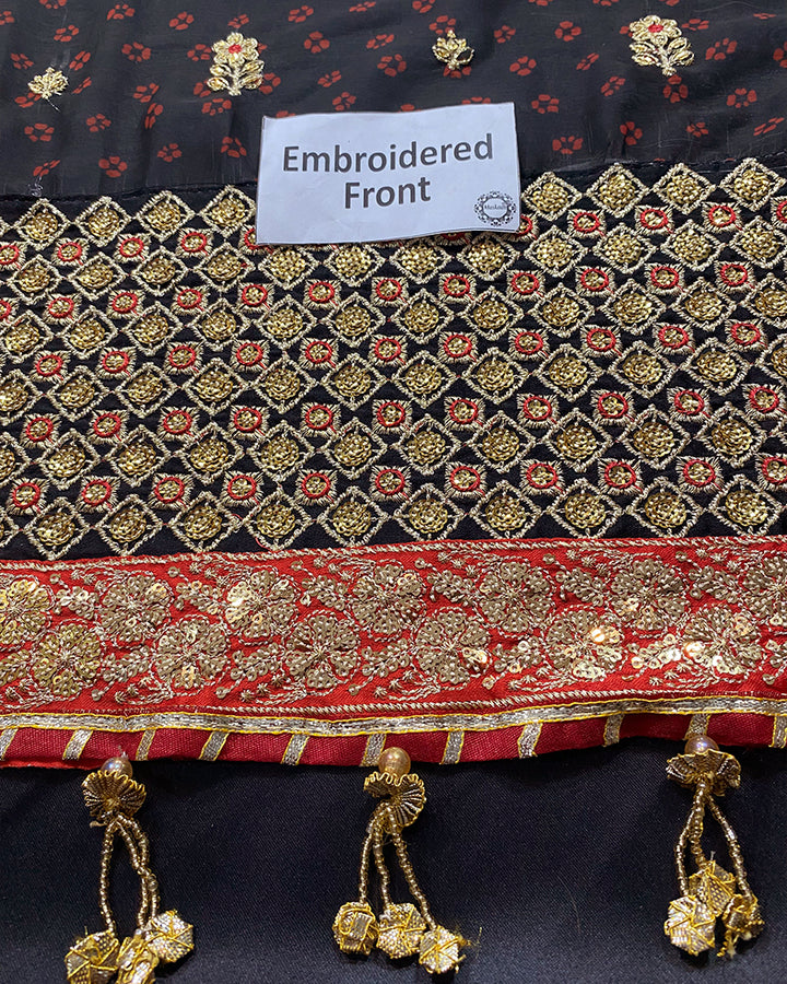 * Embroidered Front With Embroidered Borders, Gota Lace & Gota Tussuls