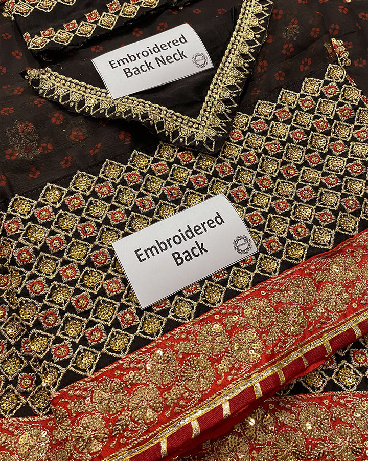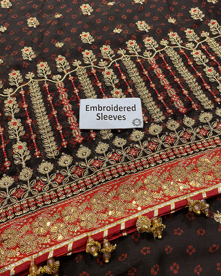 Baroque Formal Luxury Embroidered Chiffon Collection-Black Chunri