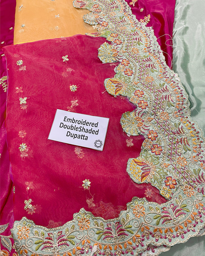 Double-shaded organza dupatta with 4-sided embroidered borders