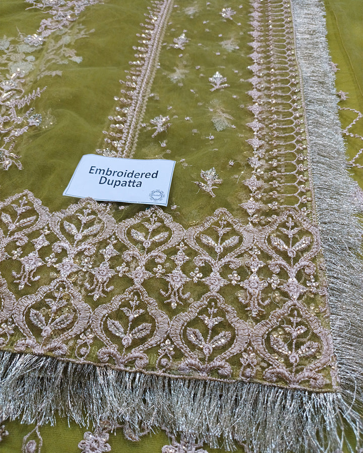 • Embroidered Dupatta With All Over Work and 4 sided zari jhalar lace 2.7 yards