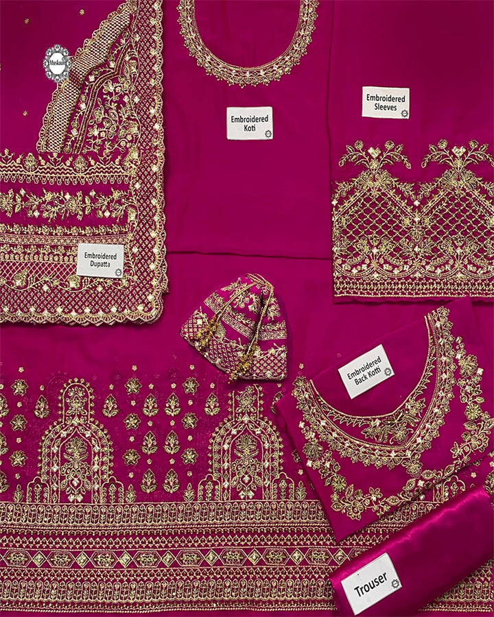 Embroidered and foilwork maxi daman (front & back) with full ghera up to 4.2 yards