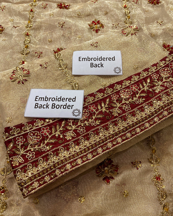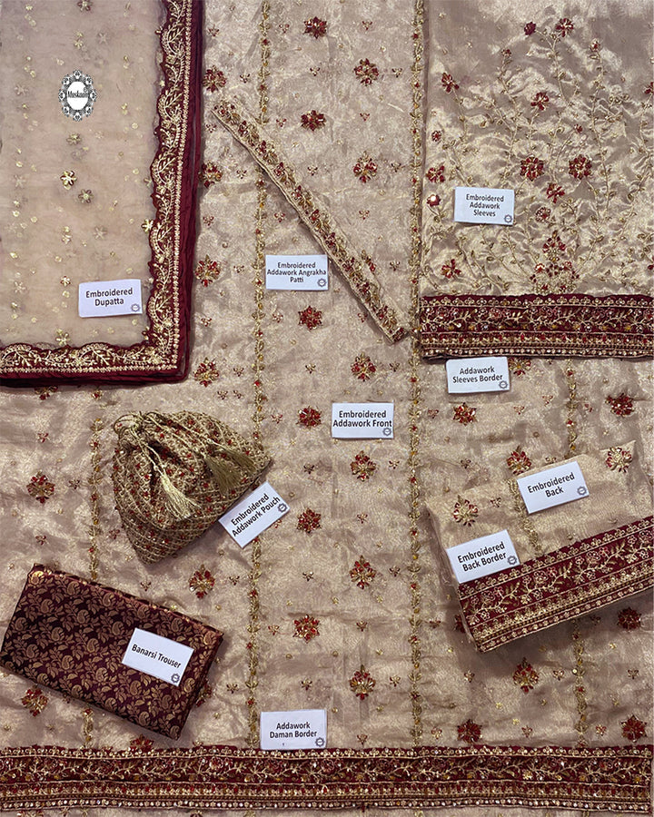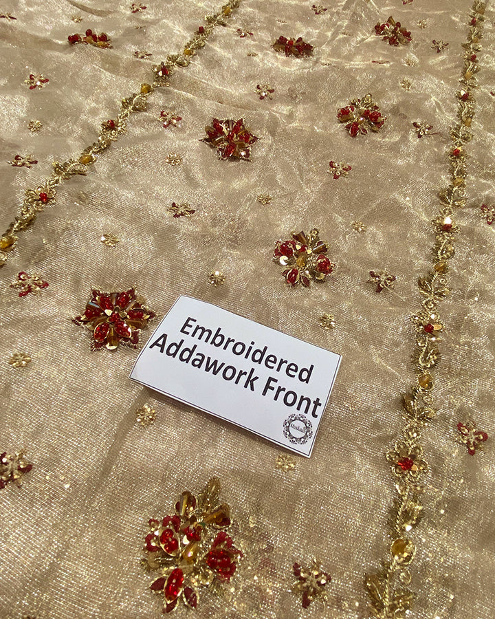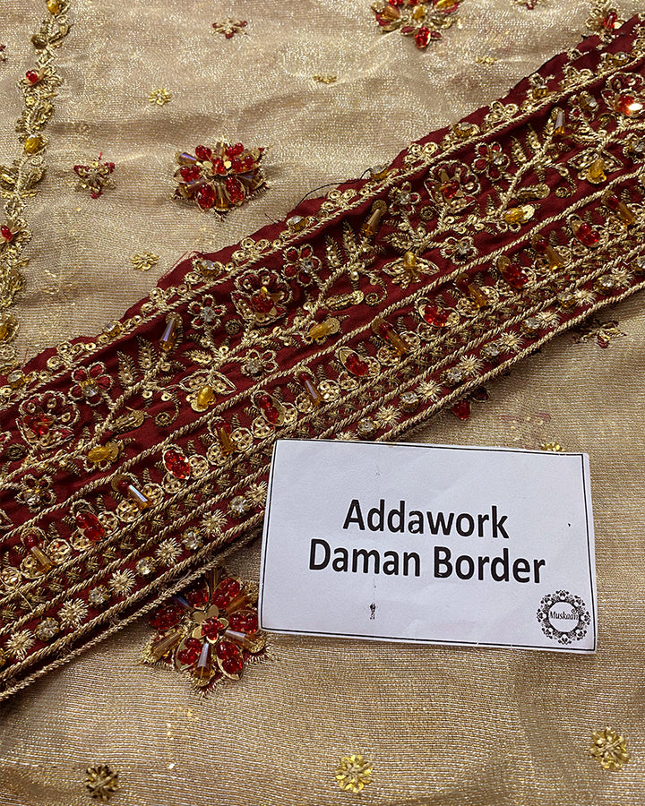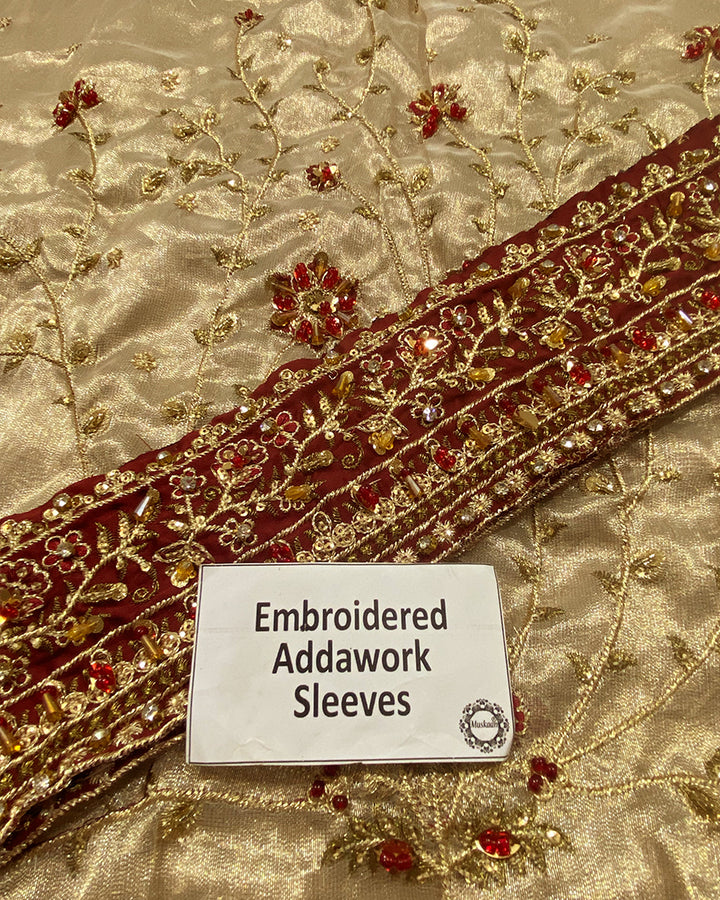 Haris Shakeel Luxury Angarkha Hand Embellished Addawork Formal Bridal Collection- Gold & Maroon