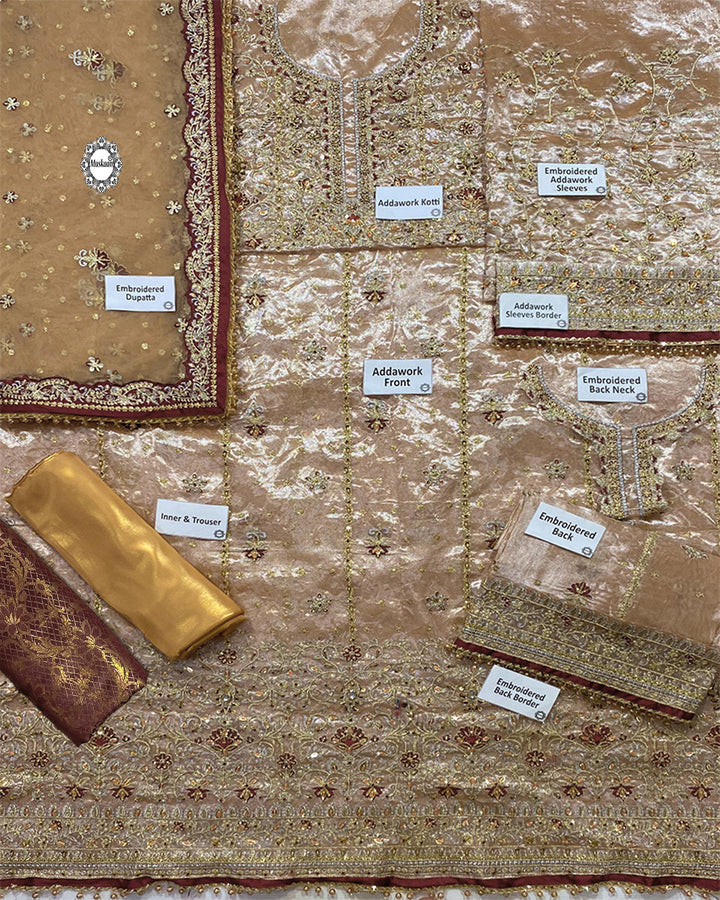 Haris Shakeel Luxury Hand Embellished Addawork Formal Wedding Collection- Aimen Gold