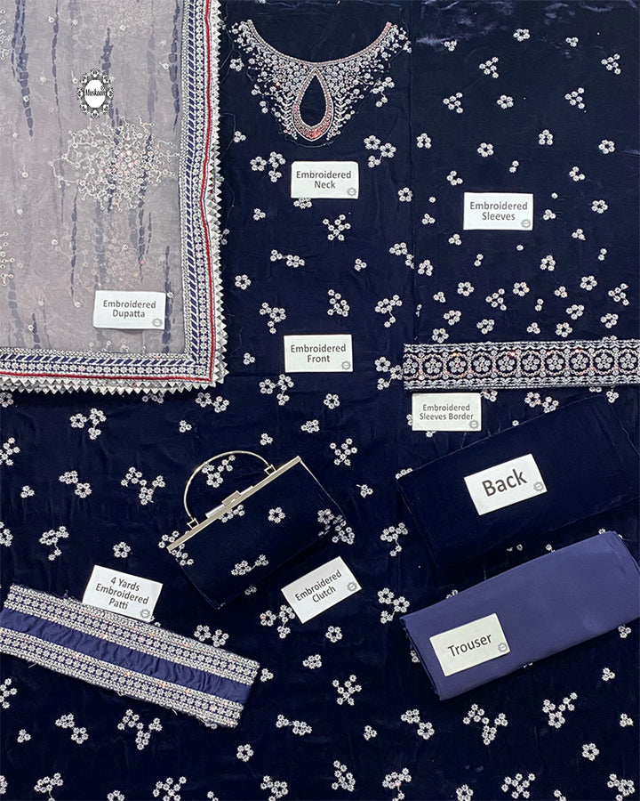 Jazmin Chandani Luxury Embroidered Velvet Wedding Collection- Navy Blue