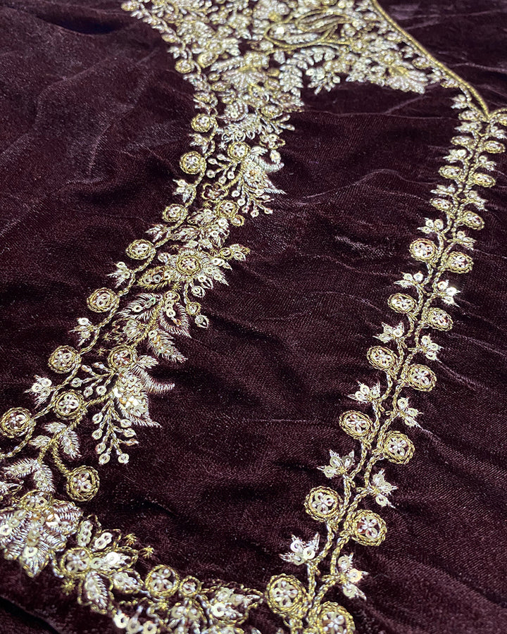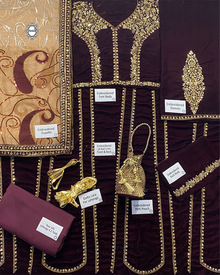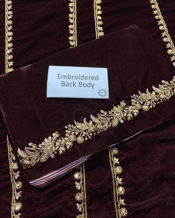Jazmin Chandani Luxury Velvet Wedding Collection- Maroon Maaxi