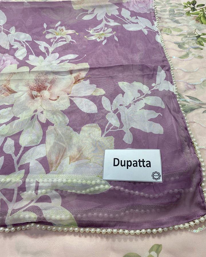 * Digital Printed Silk Dupatta With 4 Sided Moti Lace