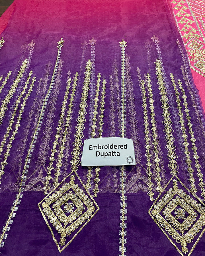 * Double Shaded Embroidered Pallu Style Dupatta With Paltawa Finishings