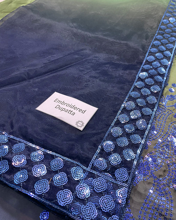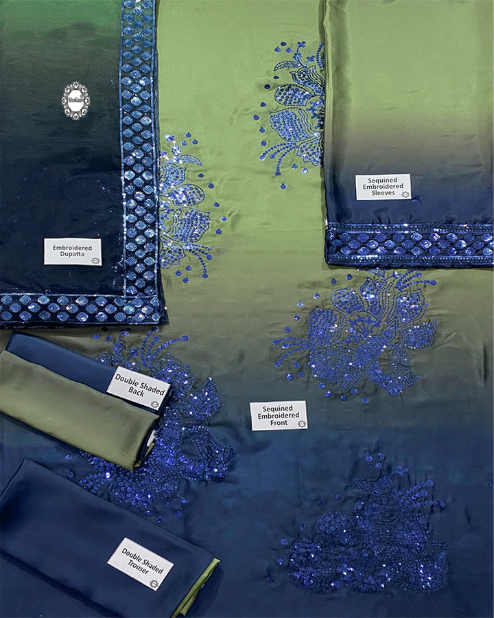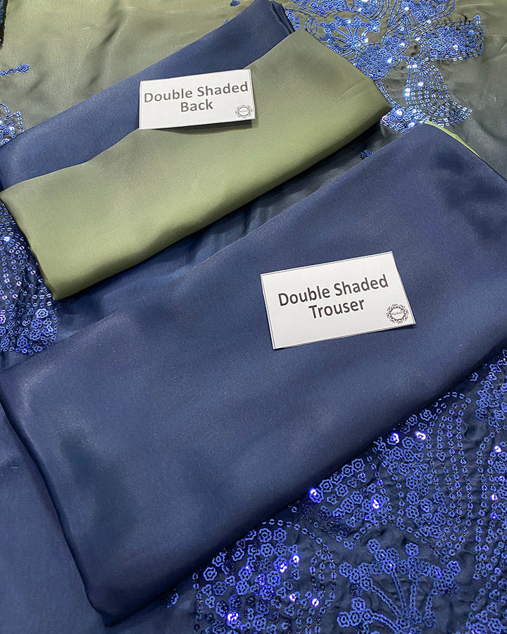 Nureh Tiny Twinkles Luxury Silk Collection -Double Shaded Pista & Midnight Blue