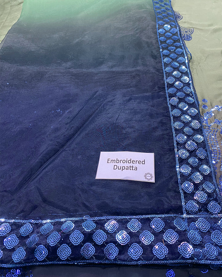 Double-shaded organza dupatta with intricate 4-sided embroidered borders