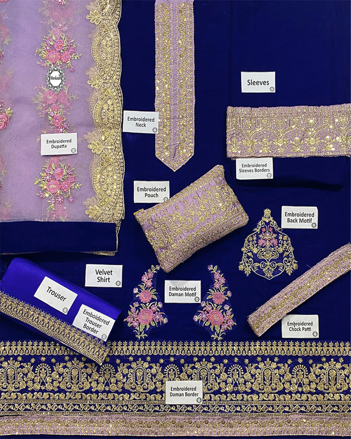 Zainab Chottani Luxury Embroidered Velvet Collection-Royal Blue